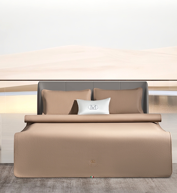 精選意大利進(jìn)口頭層牛皮,皮子更加柔軟細(xì)膩。意大利牛皮的韌性比較好,透氣性也比較佳,拉伸度高并且容易恢復(fù),又增加了摔軟、真空工藝,使得席子更加柔軟,柔軟意味著更加貼身,觸感更舒適。意大利牛皮本身更加溫和,使得牛皮席在空調(diào)下使用涼而不冰。超柔的手感配上啞光工藝,解決了牛皮席出汗粘身的痛點(diǎn)。一款用起來(lái)更柔軟、裸睡不粘身、涼而不冰的全新牛皮席,解決了顧客使用的痛點(diǎn);席尾logo壓燙,彰顯品牌品質(zhì),產(chǎn)品質(zhì)量符合18401A類標(biāo)準(zhǔn),更安全更健康;同時(shí)產(chǎn)品自帶抗菌功能,保證睡眠健康環(huán)境